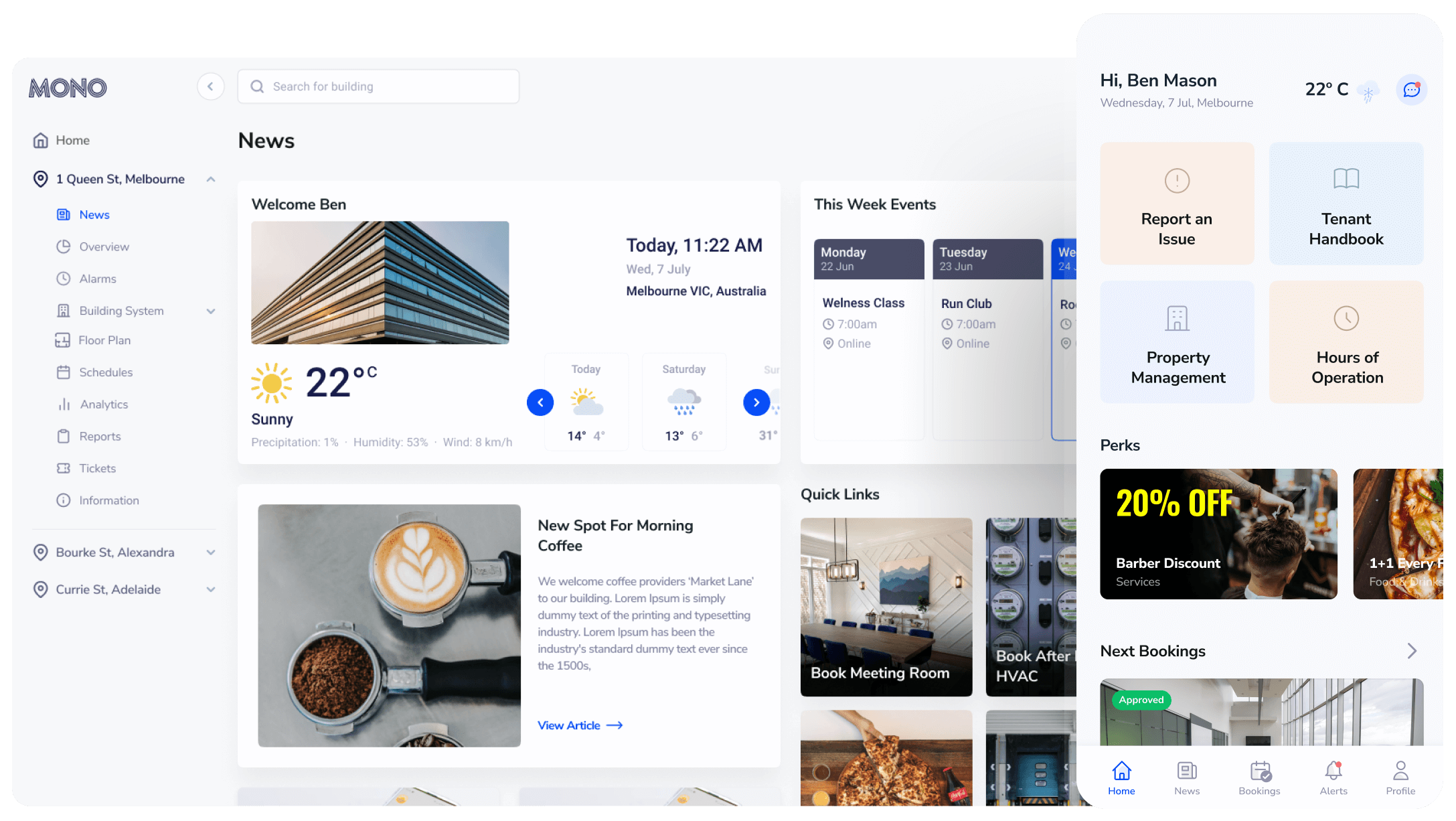MONO connects to Smart Things located within Buildings and precincts all via the internet to provide strong but flexible foundations, ready for rapid change.